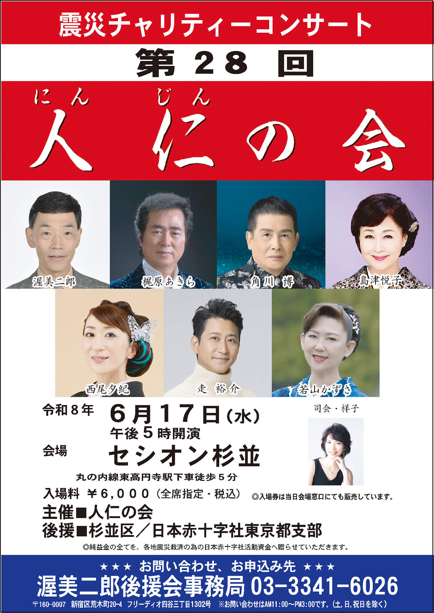 問・お申込み先:渥美二郎後援会事務局 03-3341-6026(平日11:00〜15:00)